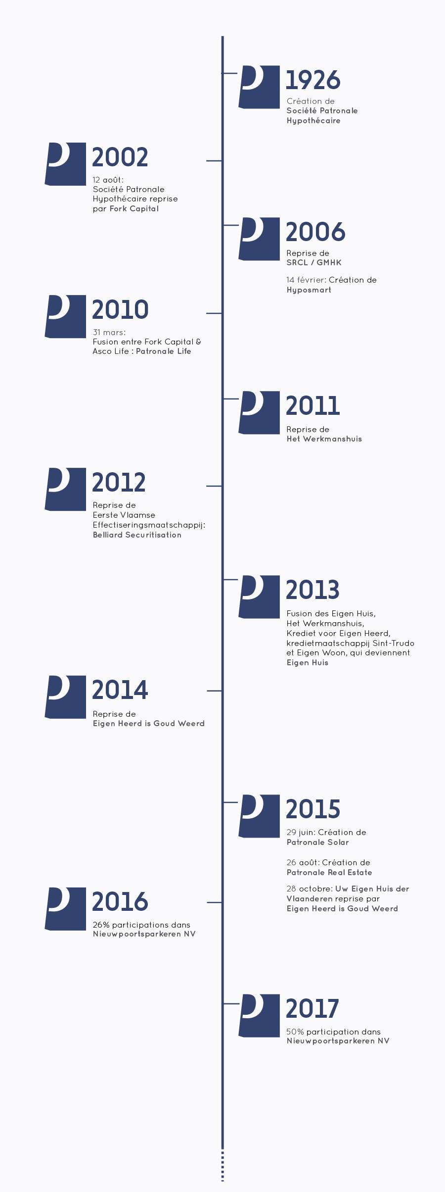 | 2023 | Patronale Life fusionne avec Patronale Group. Simultanément, Patronale Group se renomme Patronale Life |